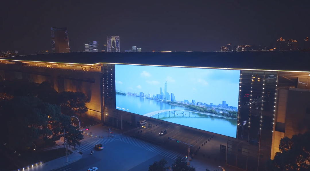 利亞德打造的蘇州戶外超高清裸眼3D大屏在蘇州國際博覽中心點(diǎn)亮。